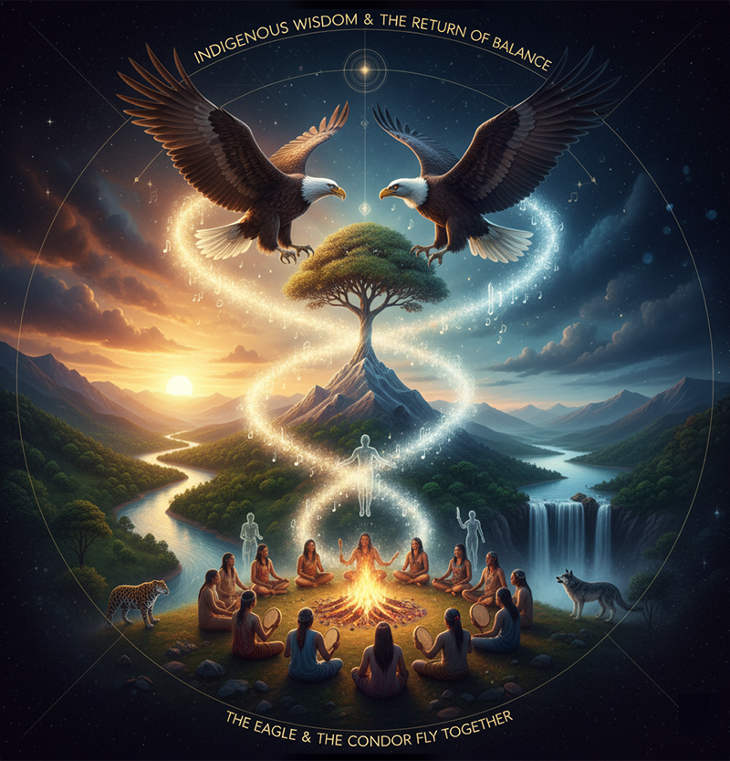 Many indigenous prophecies speak of a time when “the Eagle and the Condor will fly together,” when the mental and spiritual, the masculine and feminine, the North and South will once again converge. The Lakota call it the time of the Seventh Generation. The Maya describe it as the dawn of the Sixth Sun—an era not of cataclysm, but of luminous remembrance.